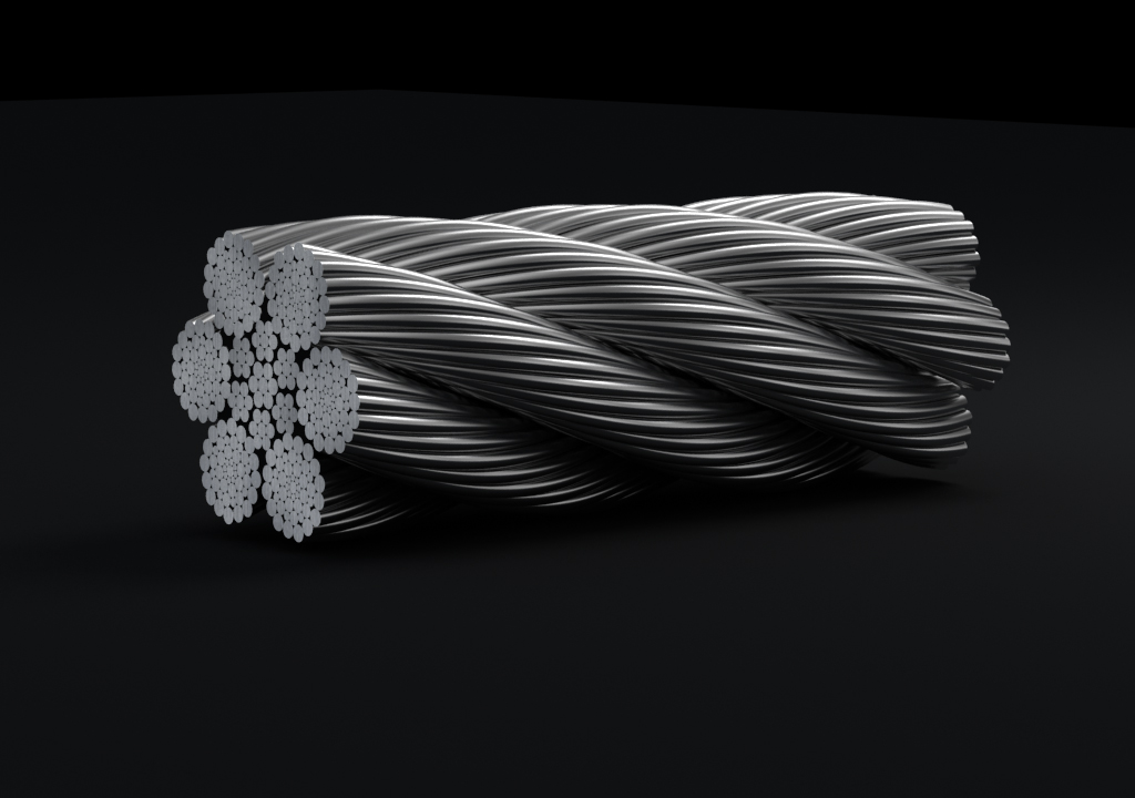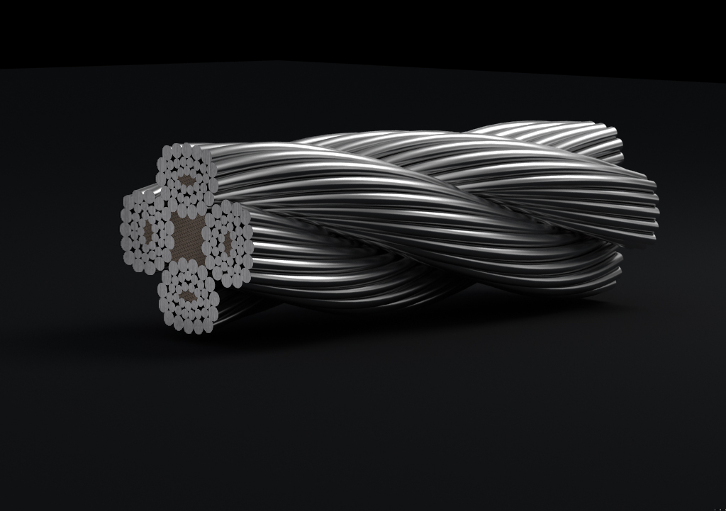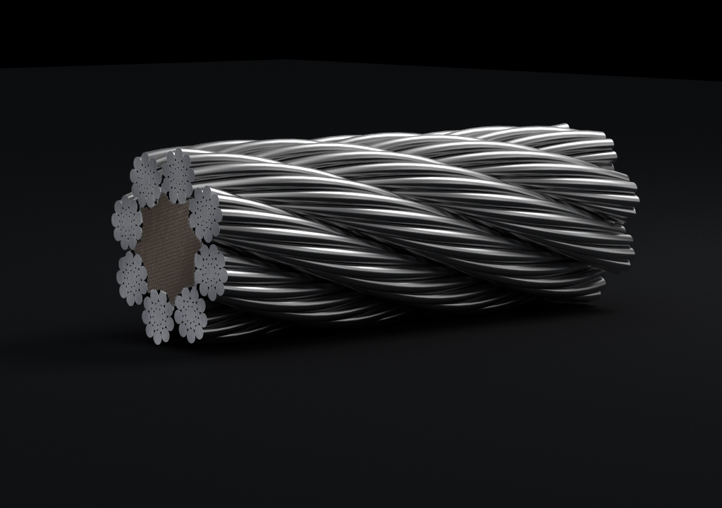 鋼絲繩由多根鋼絲按照一定的規(guī)則捻制而成的繩索。由制繩鋼絲、繩股、繩芯和繩用油脂組成。